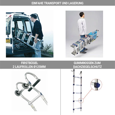 – Leichtes und sicheres Zusammenfügen durch Clip-Technik, Rutschfeste Gummikissen zum Dachziegelschutz unter jeder Sprosse.