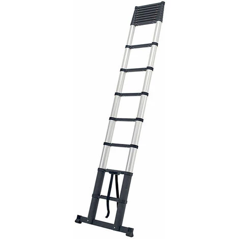 – Stabiliserende breite Leiterbasis für eine optimale Stabilität vor allem in hohen Höhen.- Je nach Höhe, die Sie erreichen möchten, können Sie die Teleskopleiter ganz oder teilweise ausklappen. Bei teilweiser Benutzung: Legen Sie beide Hände auf der Sprosse, die der gewünschten Höhe entspricht, und heben Sie die Baugruppe an, bis die Anschlagstifte einrasten. Unbenutzte Sprossen werden immer oben gestapelt.