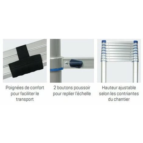Hailo – Echelle Télescopique 13 Marches Haut. De Travail 4,50m – FlexiLine