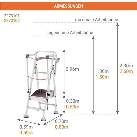 – Die komfortable Arbeitshöhe entspricht der Plattformhöhe + 1,00 m.