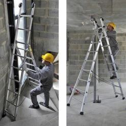 Die Mehrzweckleiter kann ideal bei Bauarbeiten im Innen- und Außenbereich verwendet werden. Für viele Anwendungen kommt diese hochwertige Multifunktionsleiter zum Einsatz. Ob bei Renovierungen im Lager, Haushalt, Werkstätten oder im Freien auf Baustellen, diese Leiter leistet immer wertvolle Hilfe.