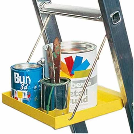 Farbe, Pinsel, Schraubenzieher – alles, was Sie brauchen, passt in diese praktische Ablageschale. In beliebiger Höhe an den Leitersprossen einhängbar.