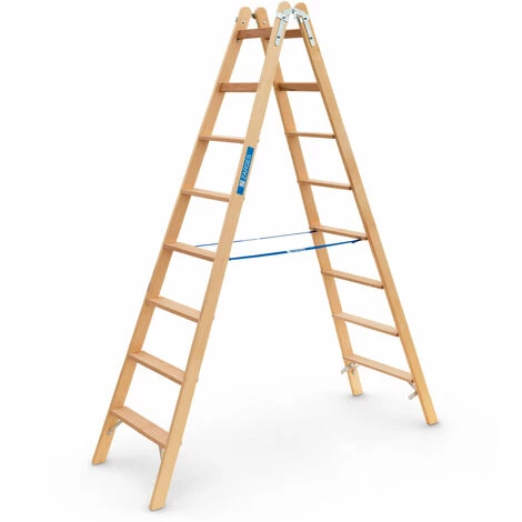 Auf Stufen sicherer arbeiten – Tiefe Stufen ermöglichen ein ermüdungsfreies Stehen. Niedrige Temperaturleitfähigkeit – damit auch bei Außeneinsätzen im Winter immer ein angenehmes Griffgefühl. Holme aus hochwertigem, ausgesuchtem Nadelholz, Stufen aus Buche.
